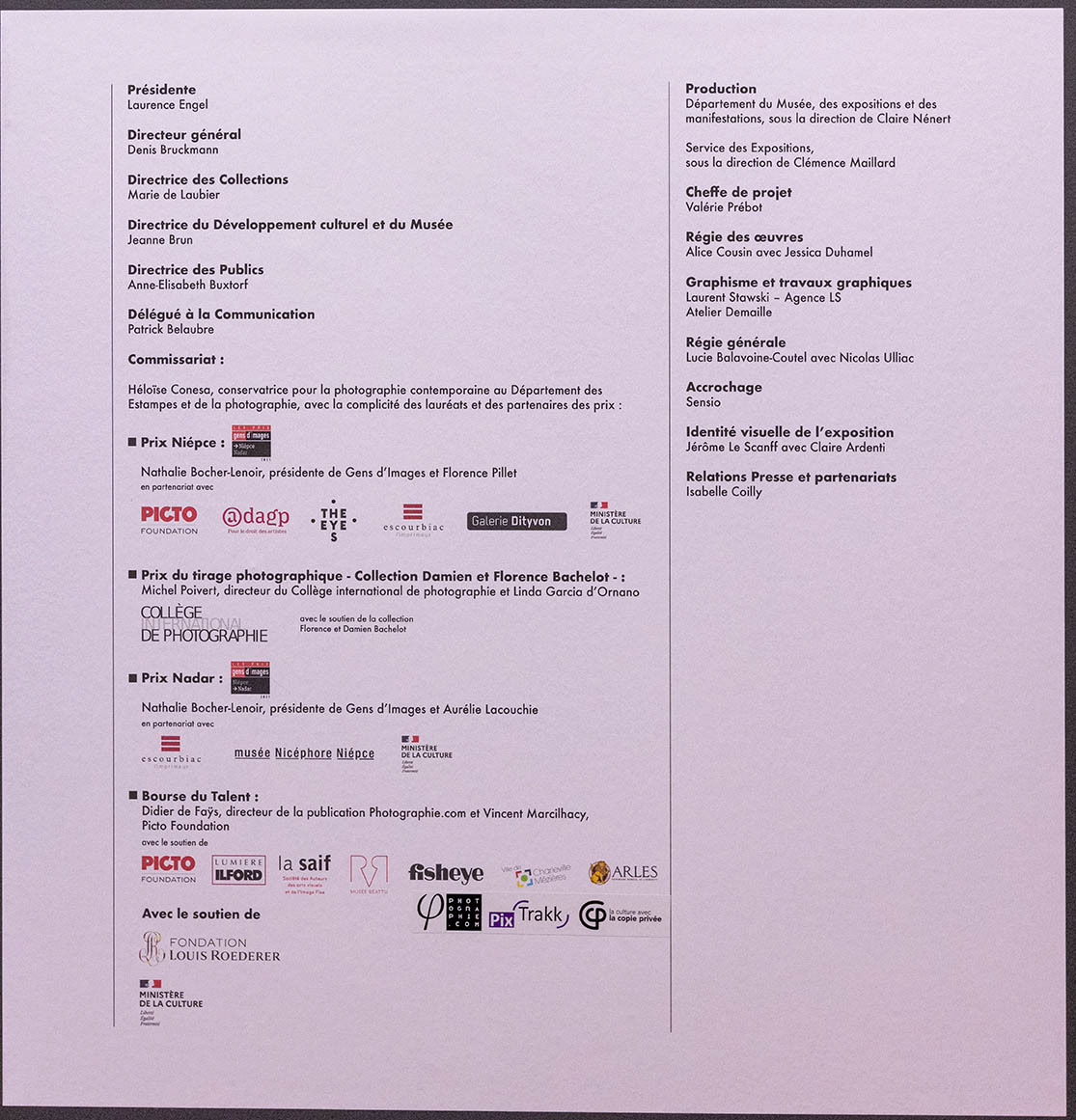 Since 1955, the Prix Nadar is organized and awarded by the association Gens d'images. It rewards a book dedicated to photography published during the past year by a French publisher. About a hundred books are presented to the jury, which evaluates the relevance of the subject, the accuracy of the editorial choices, the originality and coherence of the layout, the care taken in the production. Ten books are selected for their quality, including the winner who receives an endowment of €10,000 thanks to the support of the Ministry of Culture. Meetings are organized in Paris and in the provinces to present the winning book, including a workshop at the ADAGP on Tuesday, November 16, 2021. One copy of each book received is kept at the Bibliothèque nationale de France, in the Department of Prints and Photography, historical partner of the Nadar Prize. The second copy will be added to the Gens d'images collection in the library of the Nicéphore Niépce Museum in Chalon-sur-Saône.